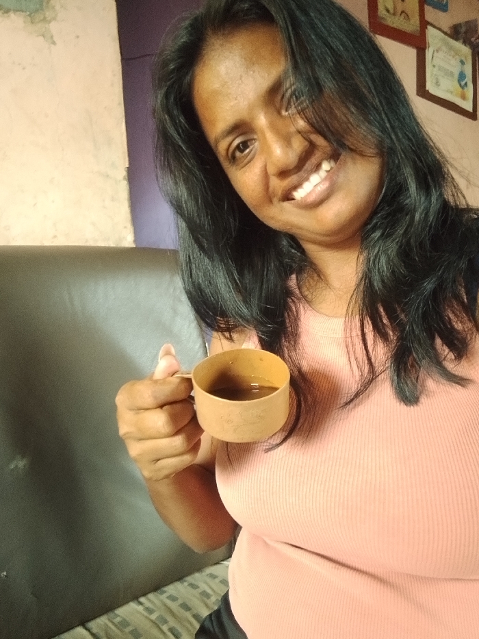 - "A smiling woman with dark hair holds a brown mug filled with a dark liquid, likely coffee or tea" by FM-ymGPj1, licensed under CC BY 4.0