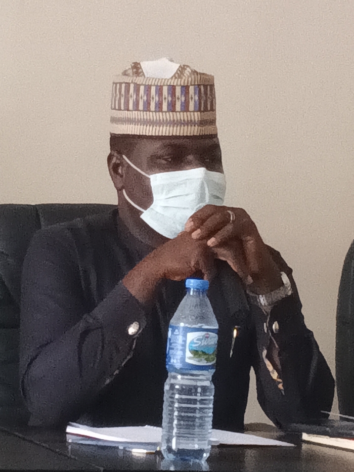 A dark-skinned individual is seated indoors, likely in a meeting room, in Jos, Nigeria