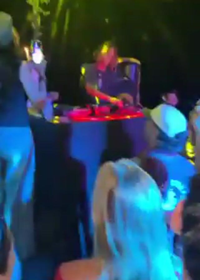 A person is recording a DJ performing in front of a crowd