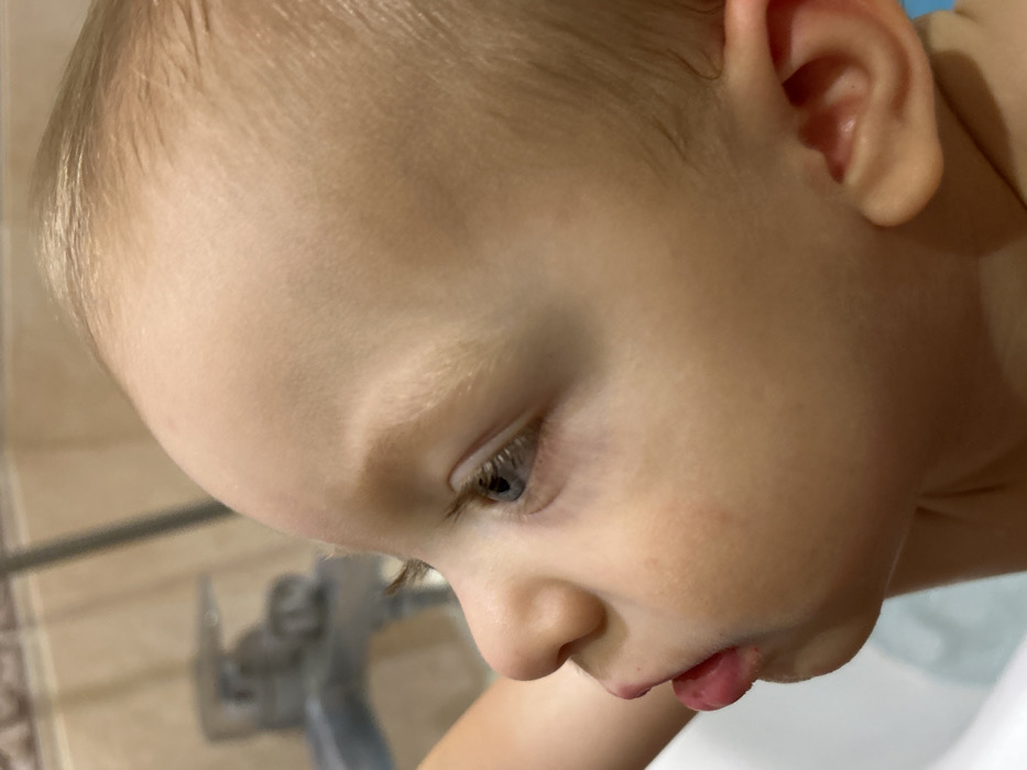 - "A close-up image depicts the left profile of a fair-skinned infant or toddler, positioned within a bathtub in what is stated as the city of Voskresensk, Russia" by FM-kJsX23, licensed under CC BY 4.0