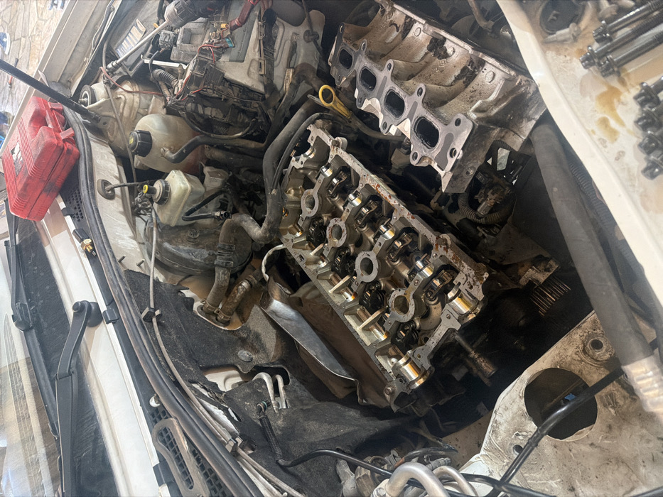 - "The image displays the engine bay of a white vehicle, likely a Dacia or Renault model, undergoing significant mechanical repair within a workshop setting in Varna, Bulgaria" by FM-caxGq2, licensed under CC BY 4.0