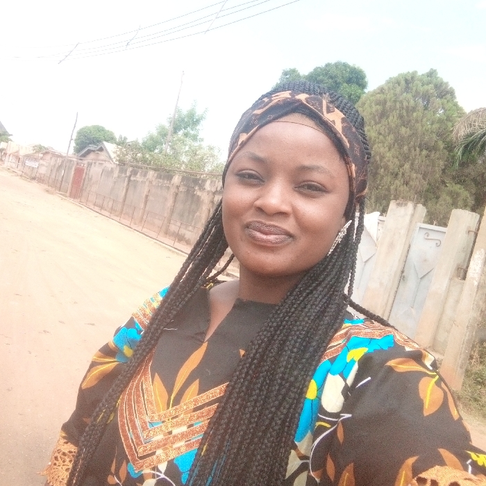 A female subject is positioned centrally, facing forward in an outdoor daytime setting located in Narayi, Nigeria