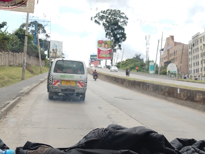 street scene in Nairobi, Kenya, taken from the perspective of a vehicle