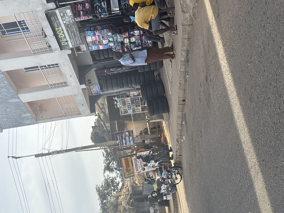 The image depicts a daytime street scene in Kabong, Nigeria