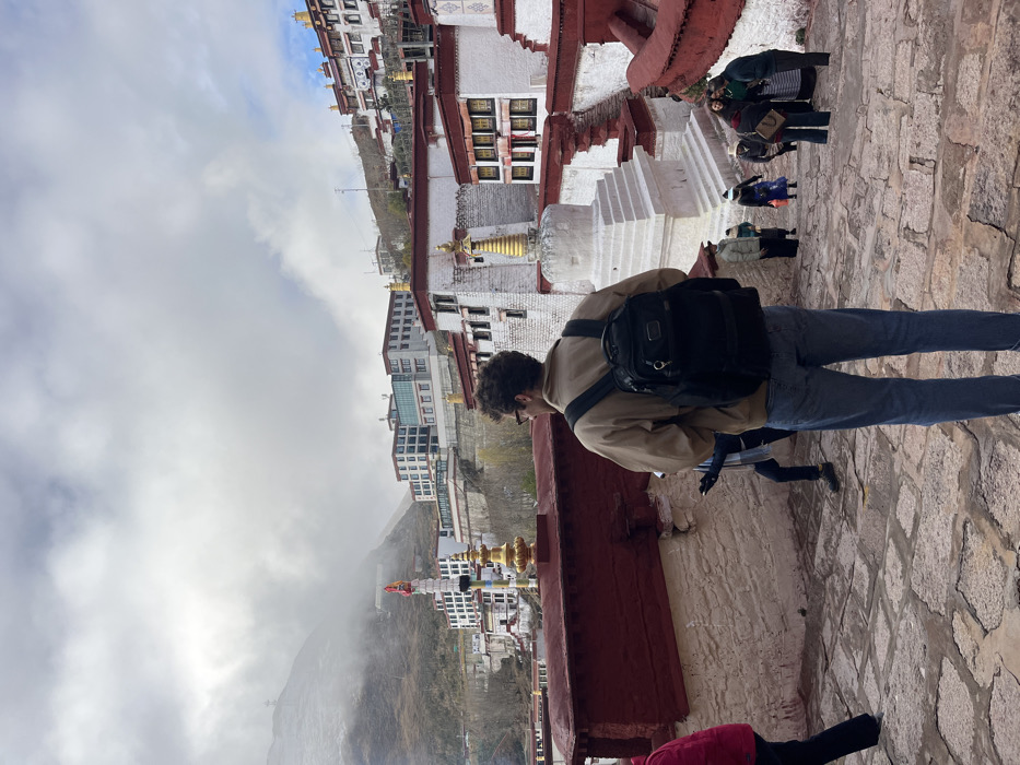 - "The image displays an outdoor scene within a Tibetan Buddhist monastic complex situated on a hillside in Lhasa, China, under an overcast sky" by FM-VYYYD2, licensed under CC BY 4.0