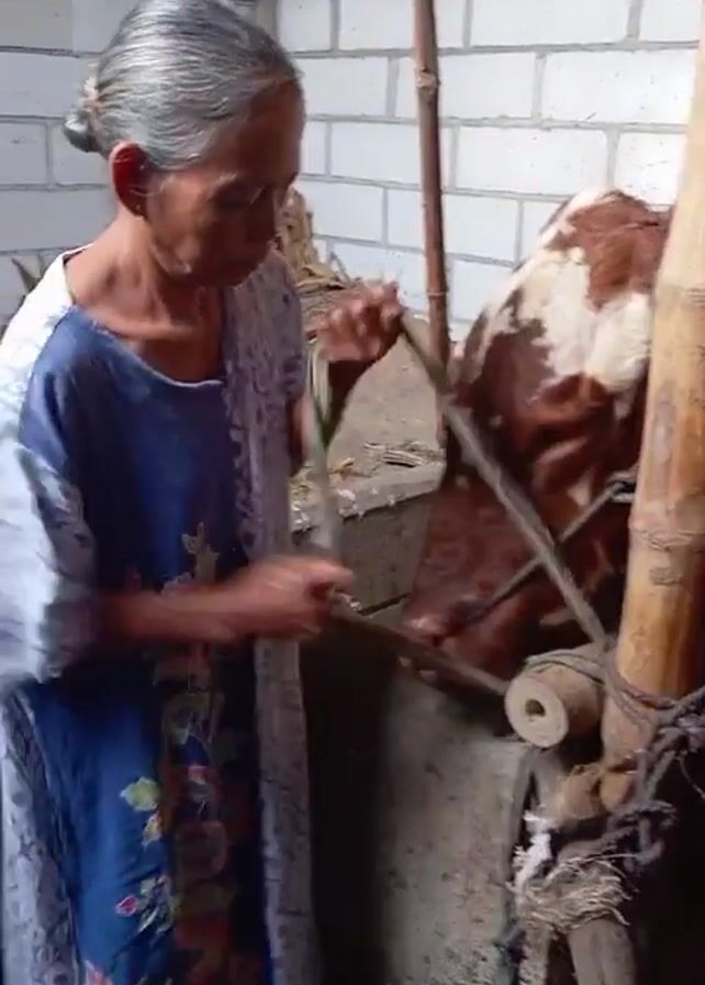 - "n elderly Asian woman tying a cow to a wooden post" by FM-TnUEx2, licensed under CC BY 4.0