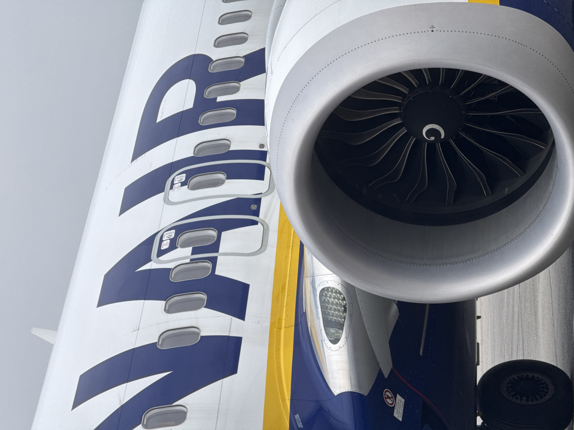 - "A close-up, ground-level view captures the mid-section of a Ryanair commercial passenger aircraft parked at Orio al Serio Airport, Italy, under an overcast sky" by FM-euyLP2, licensed under CC BY 4.0