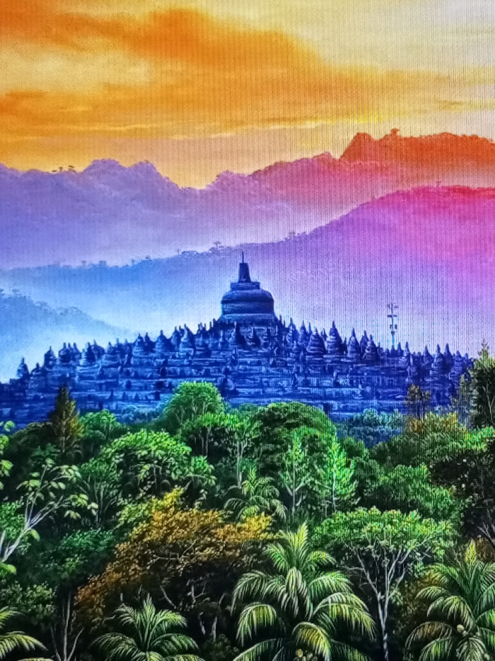 - "The image displays a detailed, wide-angle view of Borobudur Temple, a multi-tiered Buddhist monument, at what appears to be either sunrise or sunset" by FM-JNawk1, licensed under CC BY 4.0