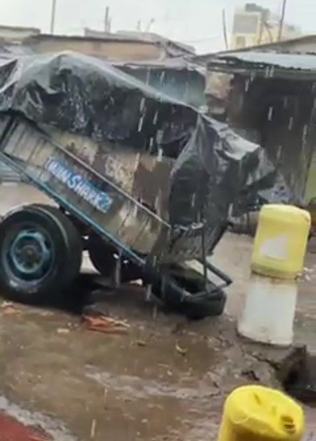 The video depicts a rainstorm in what appears to be a poor neighborhood or slum