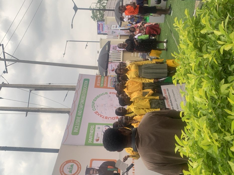 This image depicts an outdoor event taking place in an urban setting, likely an event space or school ground, in Lagos, Nigeria