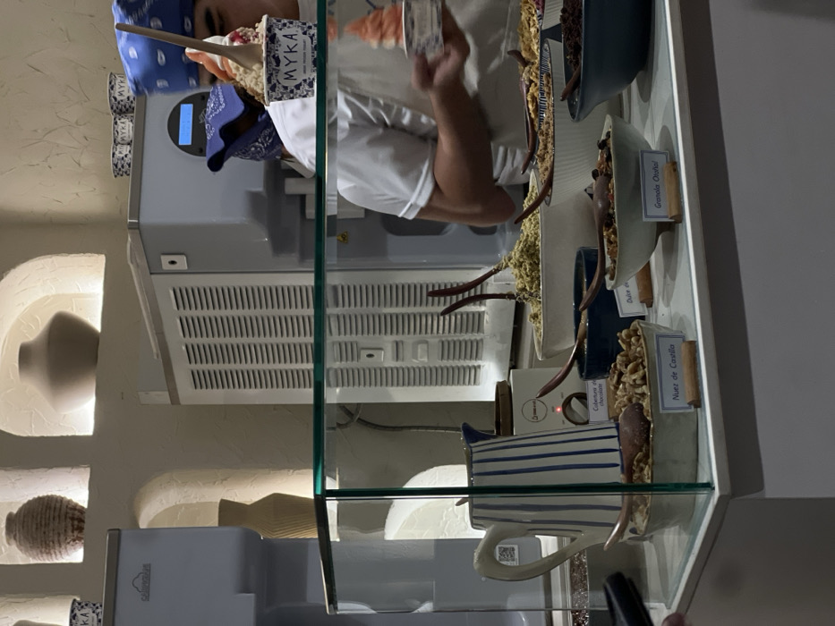 - "A person wearing a blue bandana and white shirt is scooping ice cream into a MYKA cup" by FM-mumWF2, licensed under CC BY 4.0