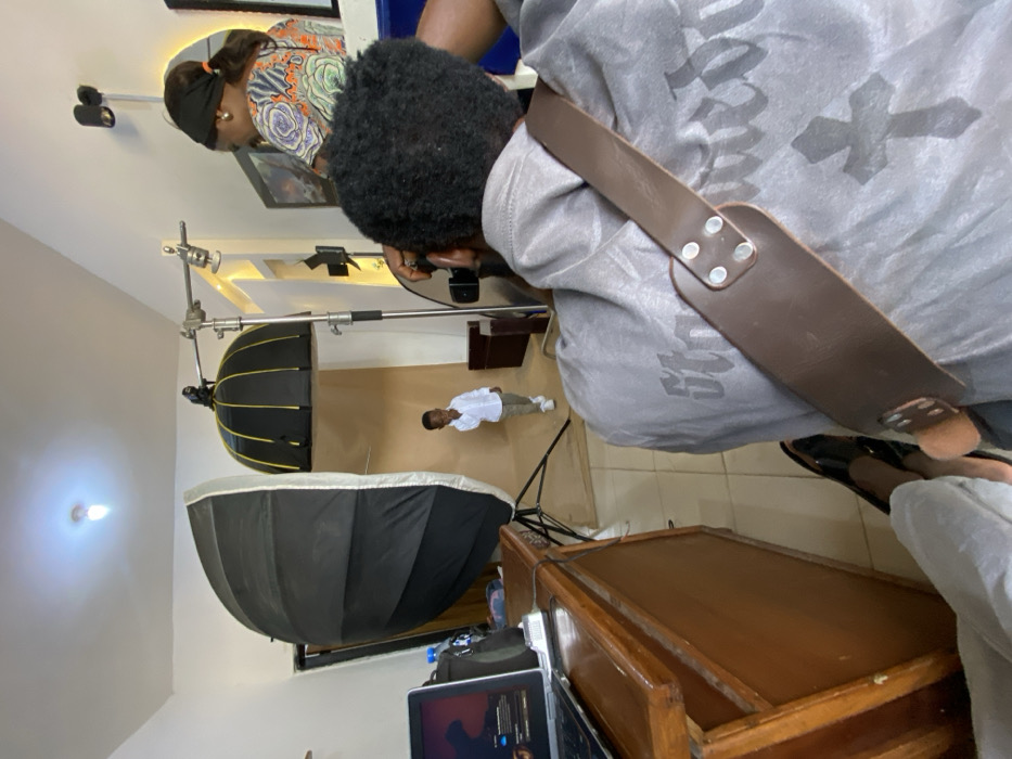 This image captures an indoor photography session underway in Bukuru, Nigeria