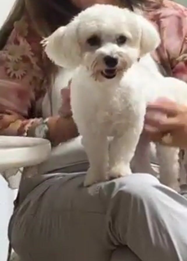 - "woman sitting on a chair with a small white dog on her lap" by FM-XPWis2, licensed under CC BY 4.0