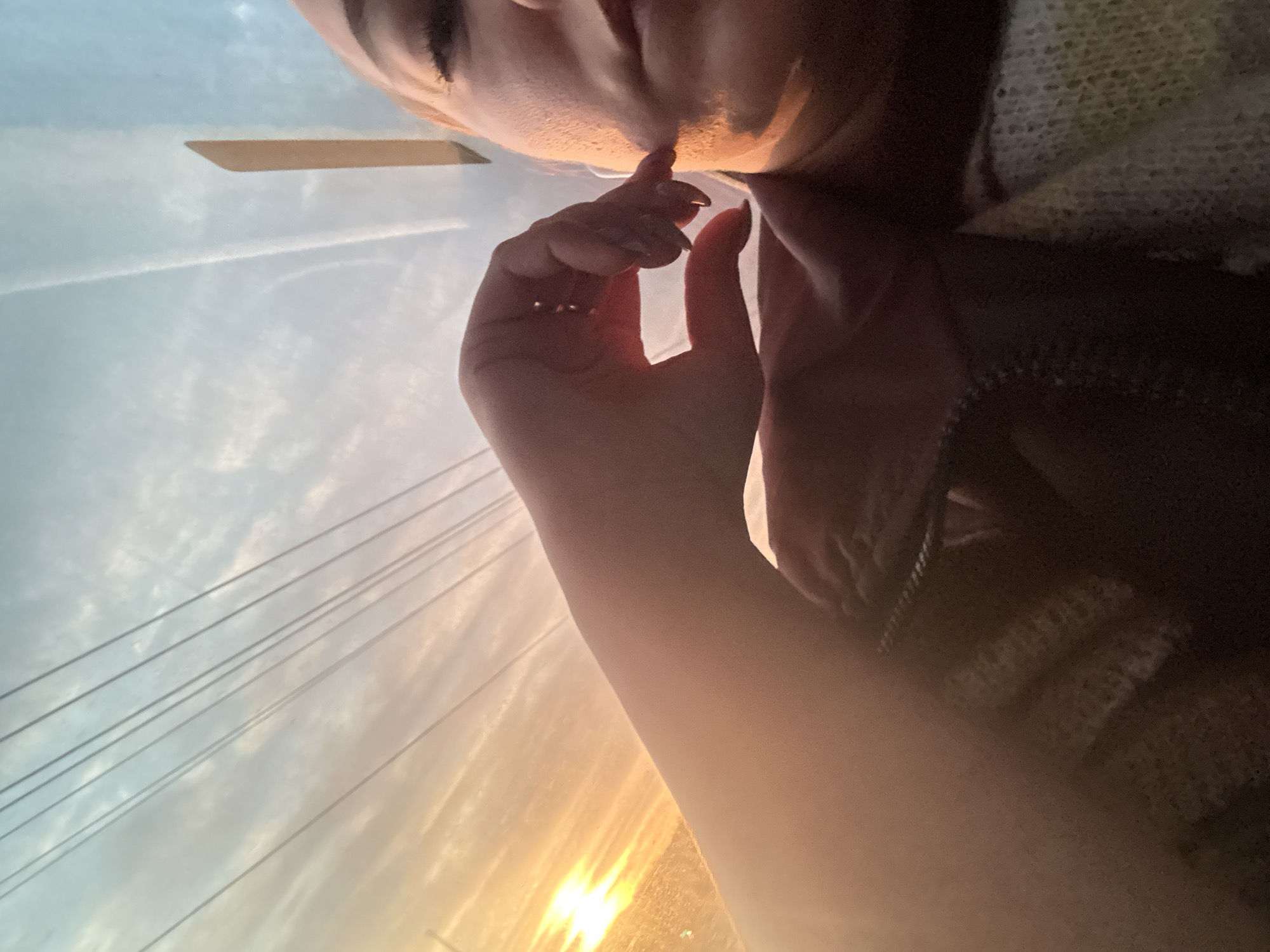 - "A low-angle, rotated image featuring a person's face and hand against a backdrop of sky, utility lines, and what appears to be the hood of a vehicle" by FM-VJm8n1, licensed under CC BY 4.0
