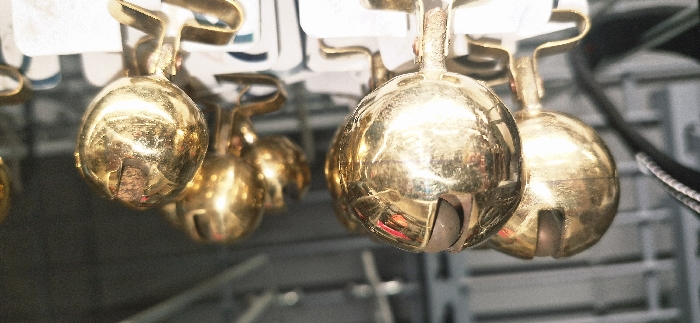 - "Several shiny, brass-colored jingle bells hang in a cluster" by FM-uLzcF2, licensed under CC BY 4.0