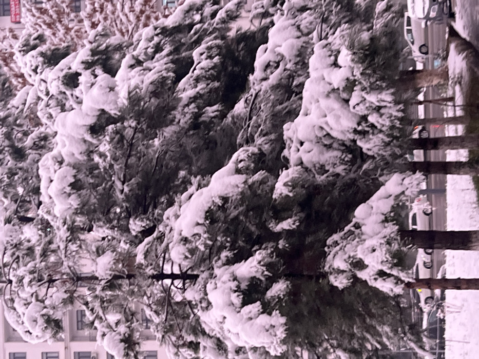 The image displays a snow-covered urban winter landscape in Tashkent, Uzbekistan