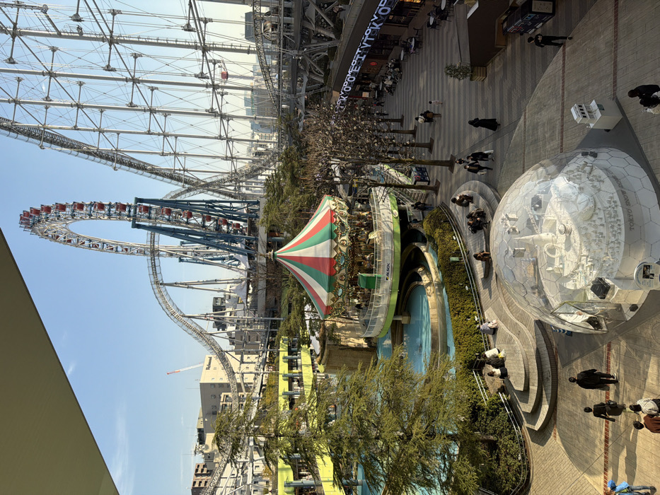 - "An amusement park features a Ferris wheel and roller coaster under a steel lattice structure" by FM-fFpNh1, licensed under CC BY 4.0