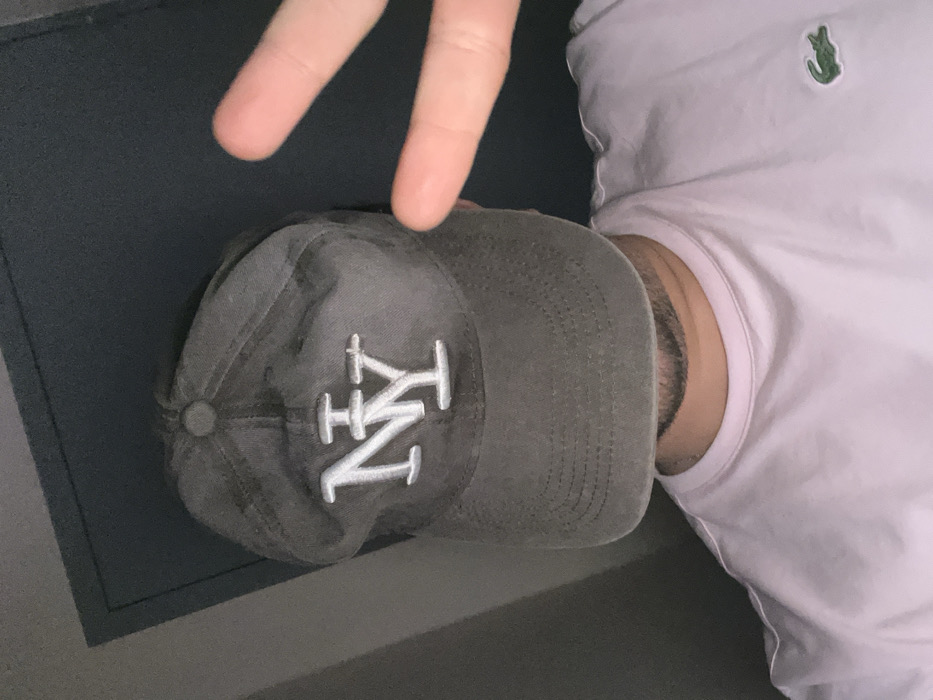 - "A gray baseball cap with the letters "NY" layered over "LA" in white embroidery sits on a dark surface" by FM-UzABM2, licensed under CC BY 4.0