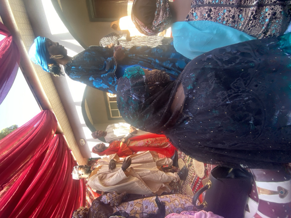 The image depicts a formal outdoor gathering in Kwarbai A, Nigeria, under a bright, sunny sky