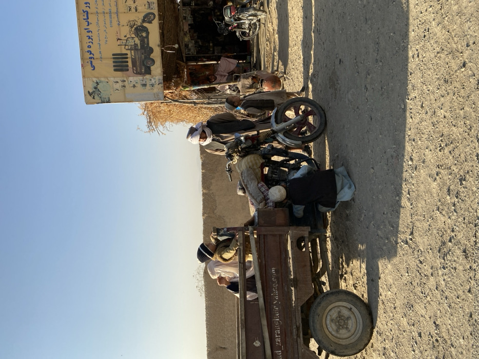 - "The scene, set in Gul Kalachah, Afghanistan, captures an outdoor gathering around vehicles on an unpaved, dusty street in front of a workshop" by FM-B5wmg2, licensed under CC BY 4.0