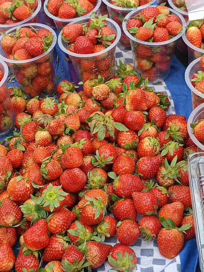 - "A vibrant display of fresh strawberries, both loose and contained in clear plastic cups, are arranged on a surface" by FM-WRTkH2, licensed under CC BY 4.0