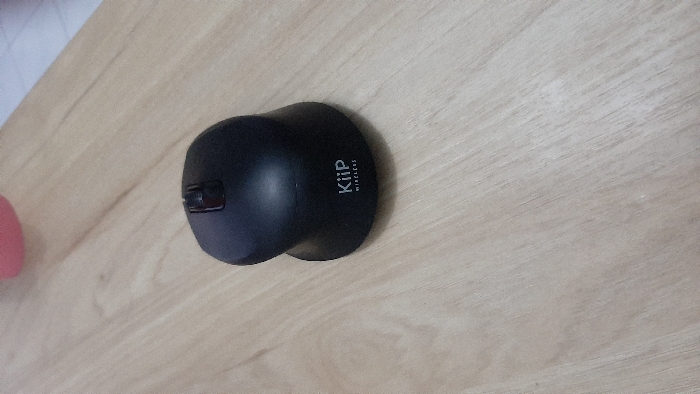 - "A black KiiP WIRELESS ergonomic vertical computer mouse rests on a light-colored wooden surface" by FM-G8tBf1, licensed under CC BY 4.0