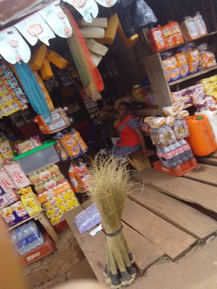 This image depicts a market stall or small provision shop located in Ankpa, Nigeria