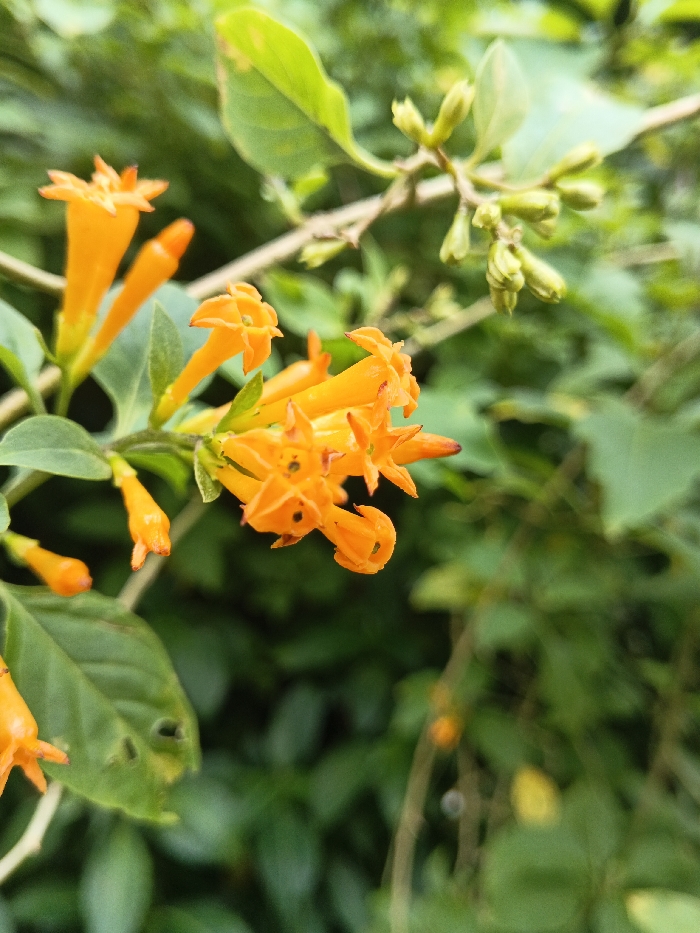 - "A close-up photograph depicts a section of a plant branch featuring vibrant orange tubular flowers and developing green flower buds" by FM-4Sqr83, licensed under CC BY 4.0