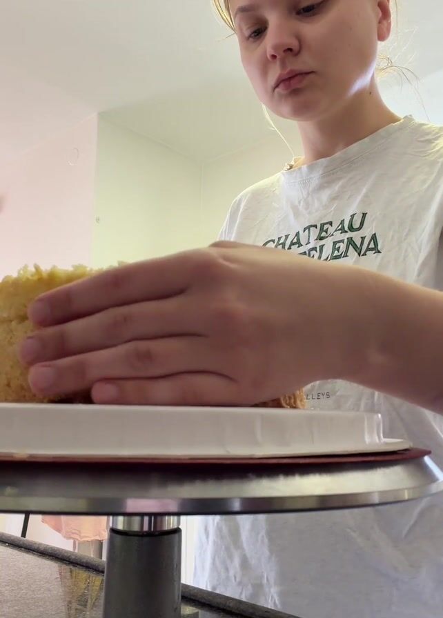 - "A woman is putting a three-layer cake together on a cake decorating turntable" by FM-k41Xm2, licensed under CC BY 4.0