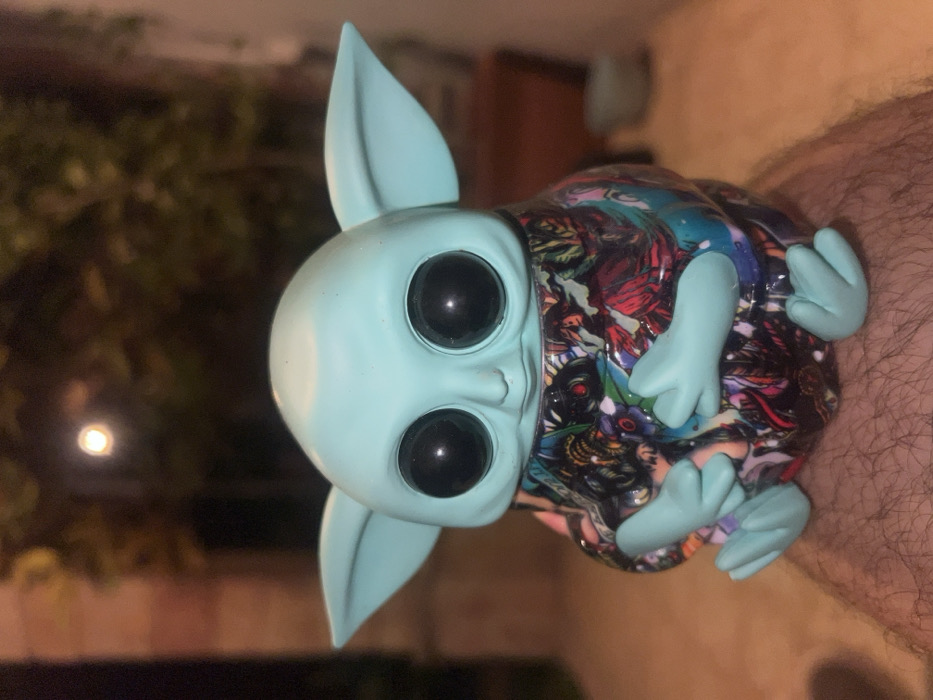 - "A collectible figurine, approximately 15-20 cm in height, resembling Grogu (Baby Yoda) from Star Wars, is centered in a close-up, eye-level shot" by FM-WxRpx2, licensed under CC BY 4.0