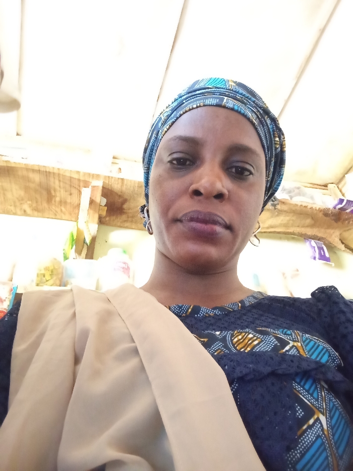 This image depicts an adult female positioned in a close-up, upward-angled shot within an indoor setting in Kakuri Gwari, Nigeria