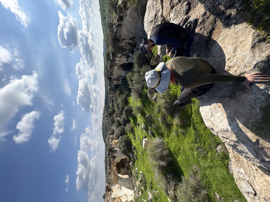- "Two individuals are seated on a light-colored rock formation, observing a verdant valley in the Yoav Regional Council, Israel" by FM-WxcAf2, licensed under CC BY 4.0