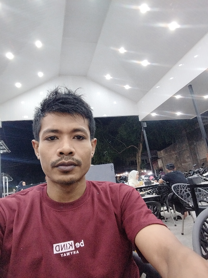 - "An individual is depicted in a close-up, chest-up selfie taken at night in what appears to be a semi-outdoor dining establishment in Lhokseumawe, Indonesia" by FM-vhmNj2, licensed under CC BY 4.0
