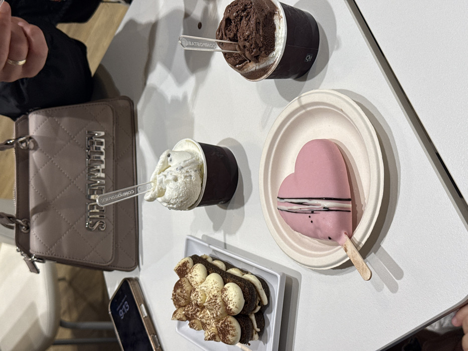 The image displays a tabletop within Golosità Gelateria, Naples, Florida, United States