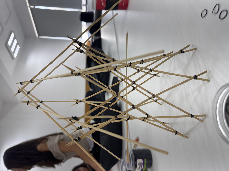 - "An indoor scene in San Andrés Cholula, Mexico, depicts a meticulously constructed three-dimensional architectural model made from numerous light-colored wooden skewers, interconnected by small, dark elastic bands" by FM-RbEdK2, licensed under CC BY 4.0