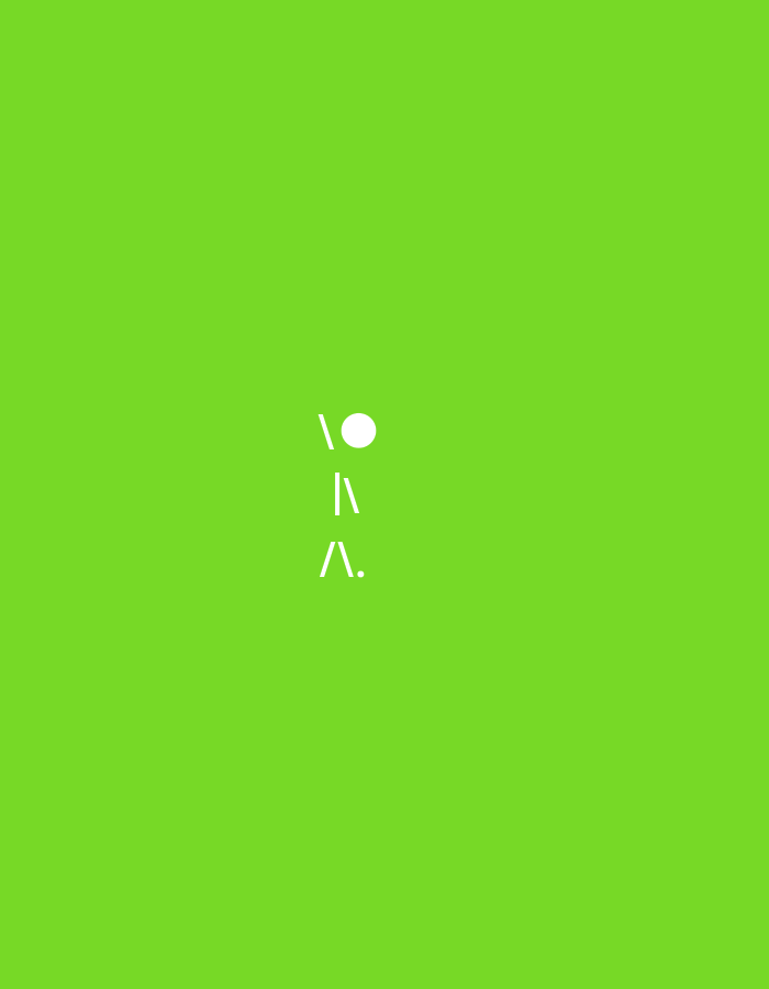 A simple minimalist design on a solid green background shows three lines of white text-based graphics stacked vertically