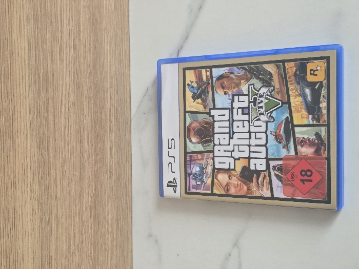 - "A PlayStation 5 video game case for "Grand Theft Auto V" is positioned upright, slightly angled, in the center of the frame" by FM-bPPv32, licensed under CC BY 4.0