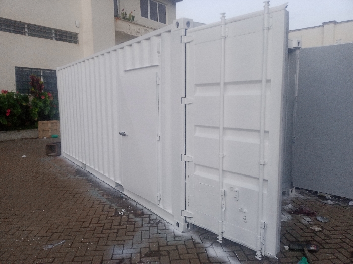 - "A white shipping container with an additional side door sits on a brick surface" by FM-WEceg1, licensed under CC BY 4.0