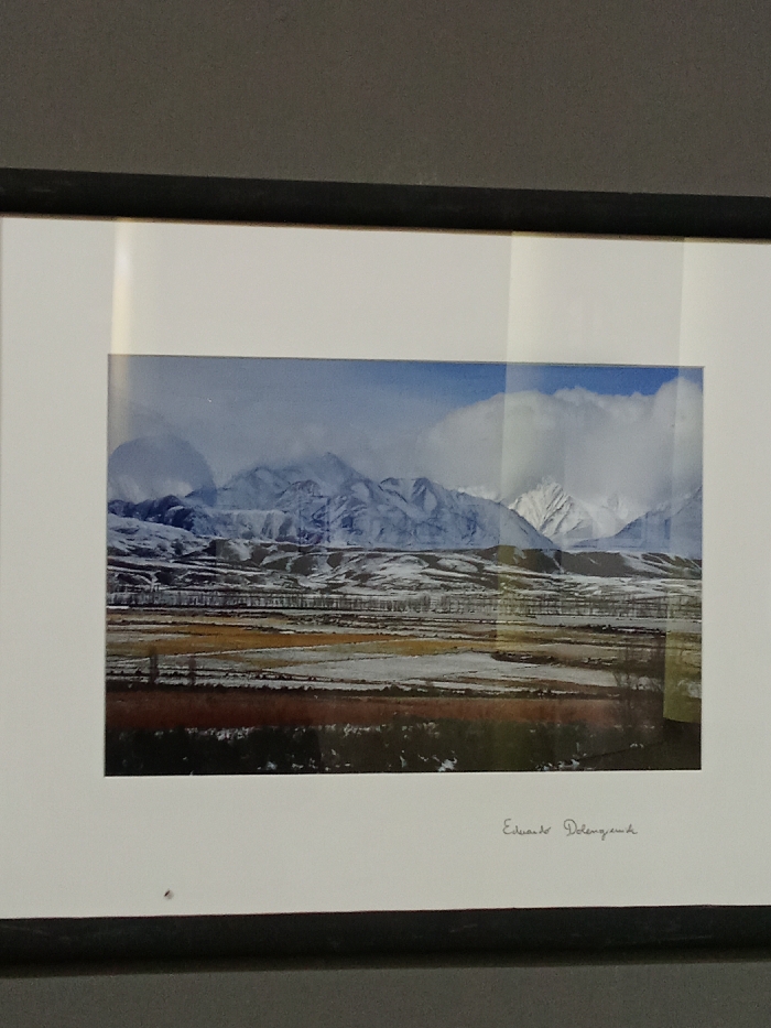 A framed photographic print, attributed to Eduardo Delengzach, is mounted on a plain dark gray wall
