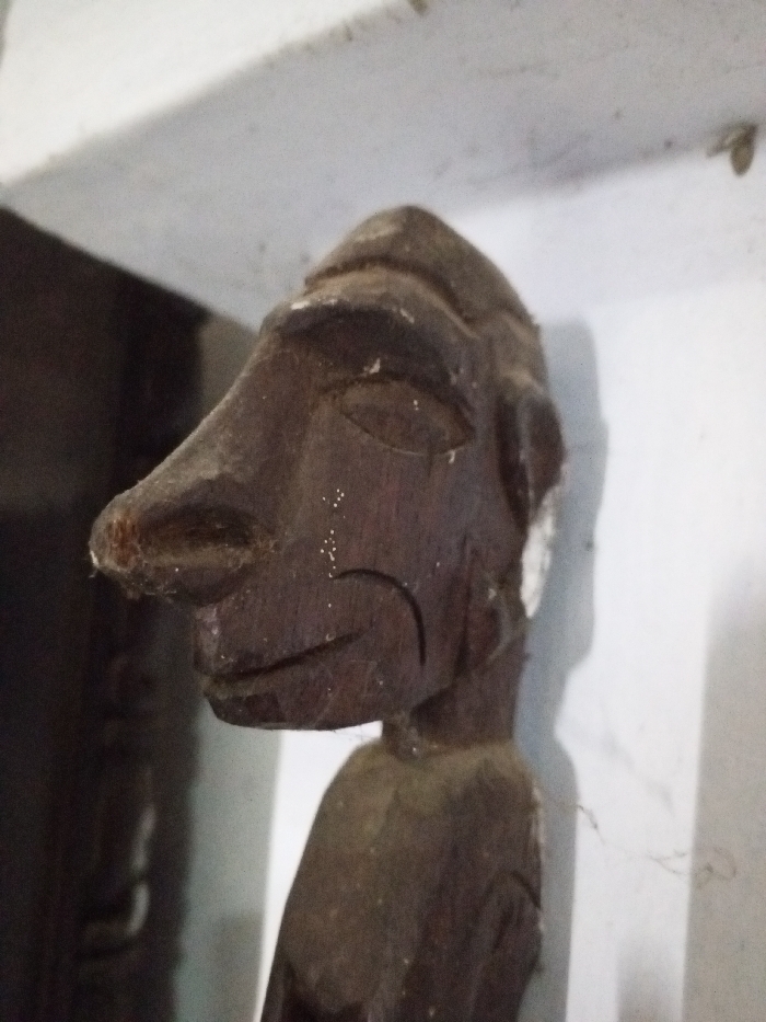- "The image displays a dark brown wooden carving, viewed from an oblique angle, located indoors in Keo Kouang, Laos" by FM-QhXjr2, licensed under CC BY 4.0