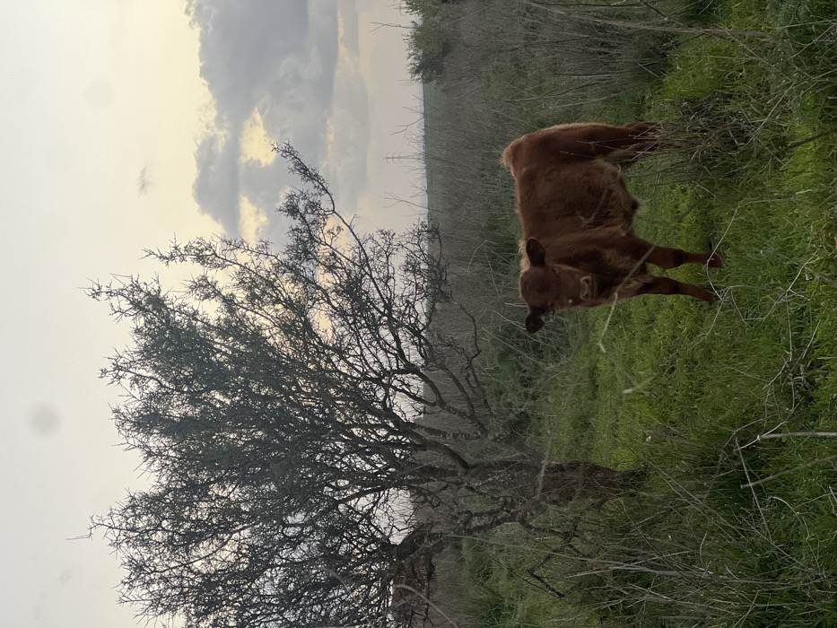 - "A brown calf stands in a field of green grass near a bare tree" by FM-Vq3LF2, licensed under CC BY 4.0