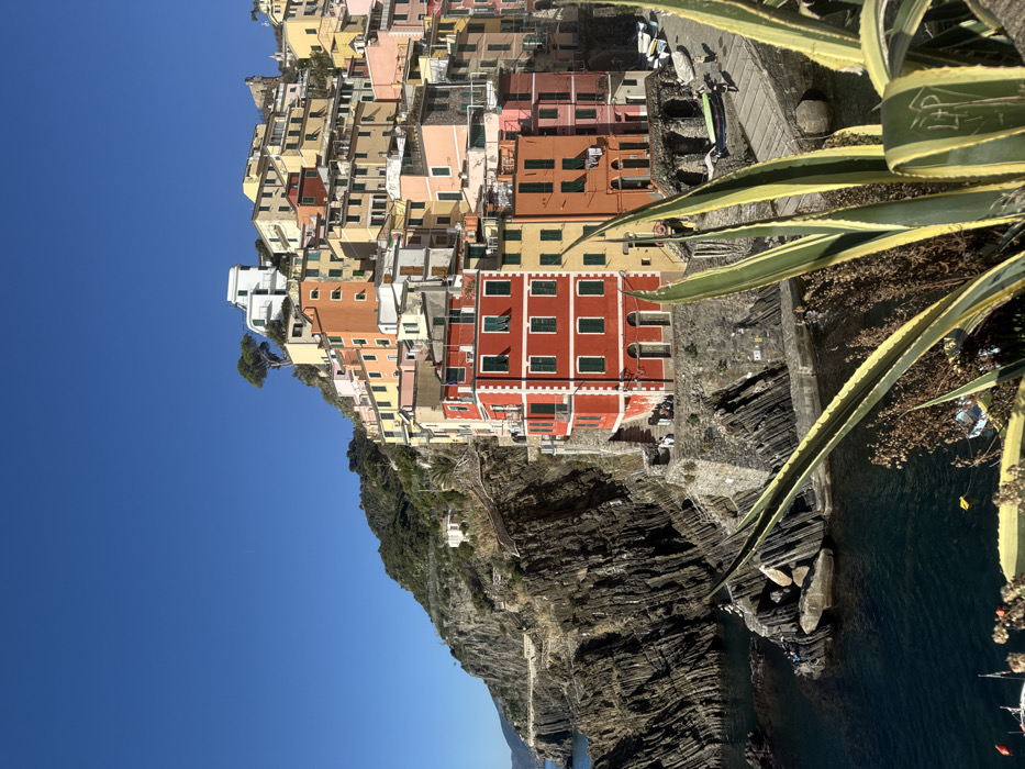 - "The image displays a coastal village scene identified as Manarola, Italy, under a clear, bright blue sky" by FM-yjK1X2, licensed under CC BY 4.0
