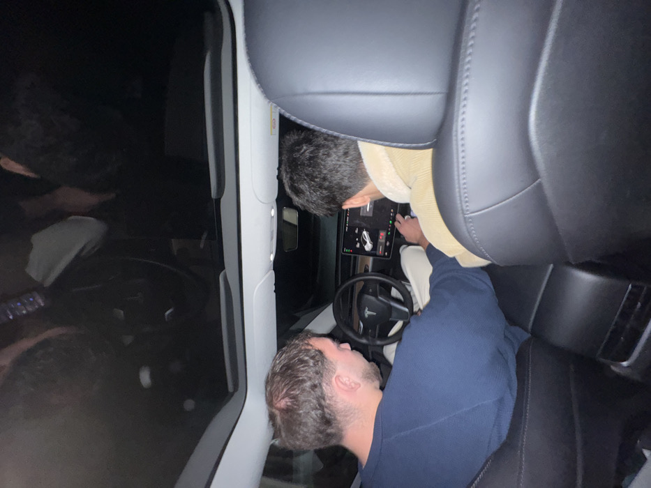 - "The image displays the interior of a Tesla vehicle, viewed from a rear passenger seat at night or in a low-light condition" by FM-RHiCd2, licensed under CC BY 4.0