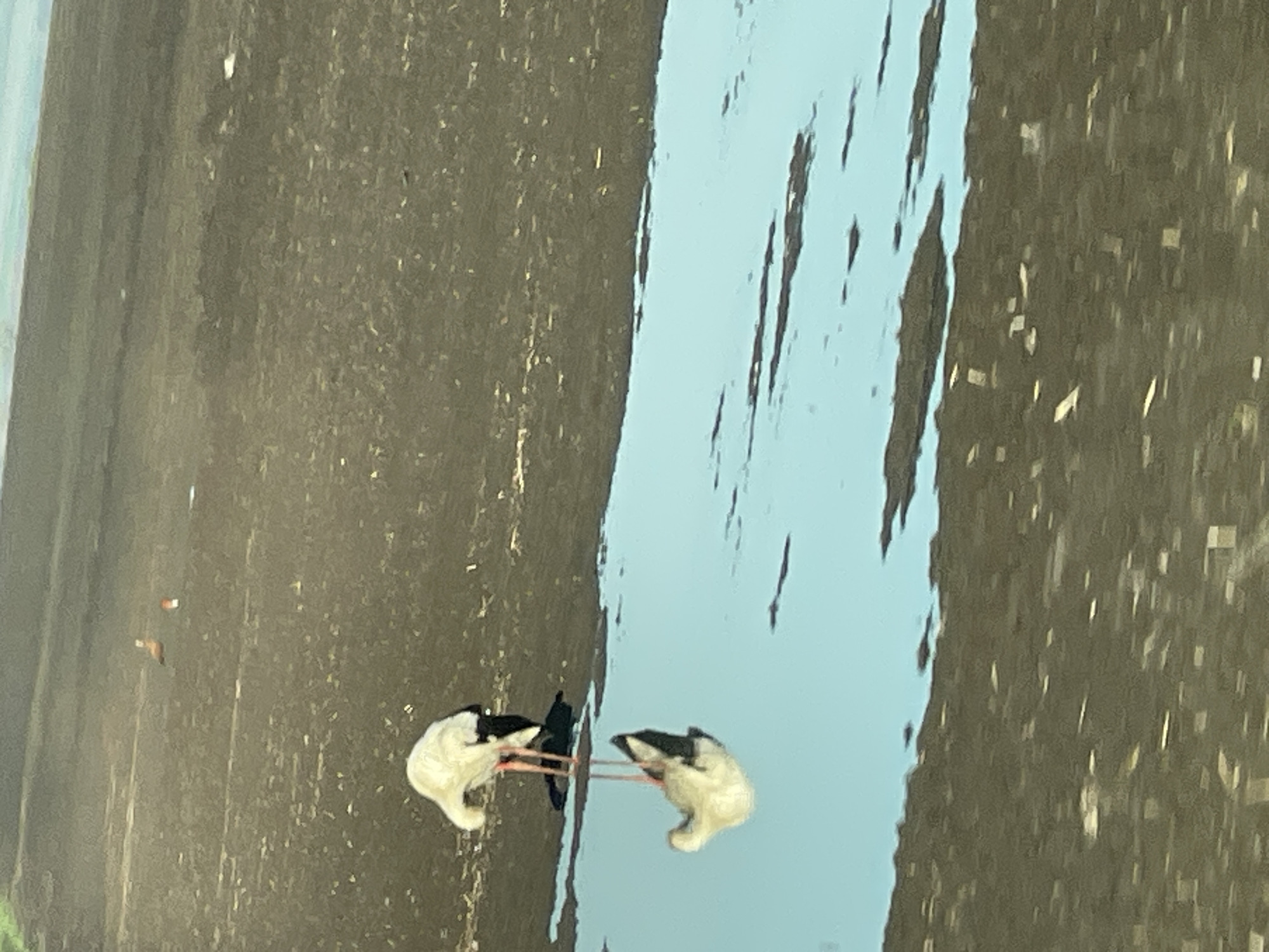 - "two birds with black and white plumage and pink legs standing in shallow water" by FM-ubWSm1, licensed under CC BY 4.0