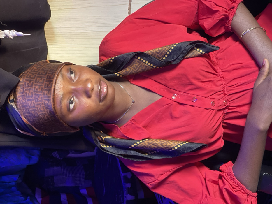 A young adult female, with brown skin, is depicted in a medium indoor shot, likely in Samaru, Nigeria
