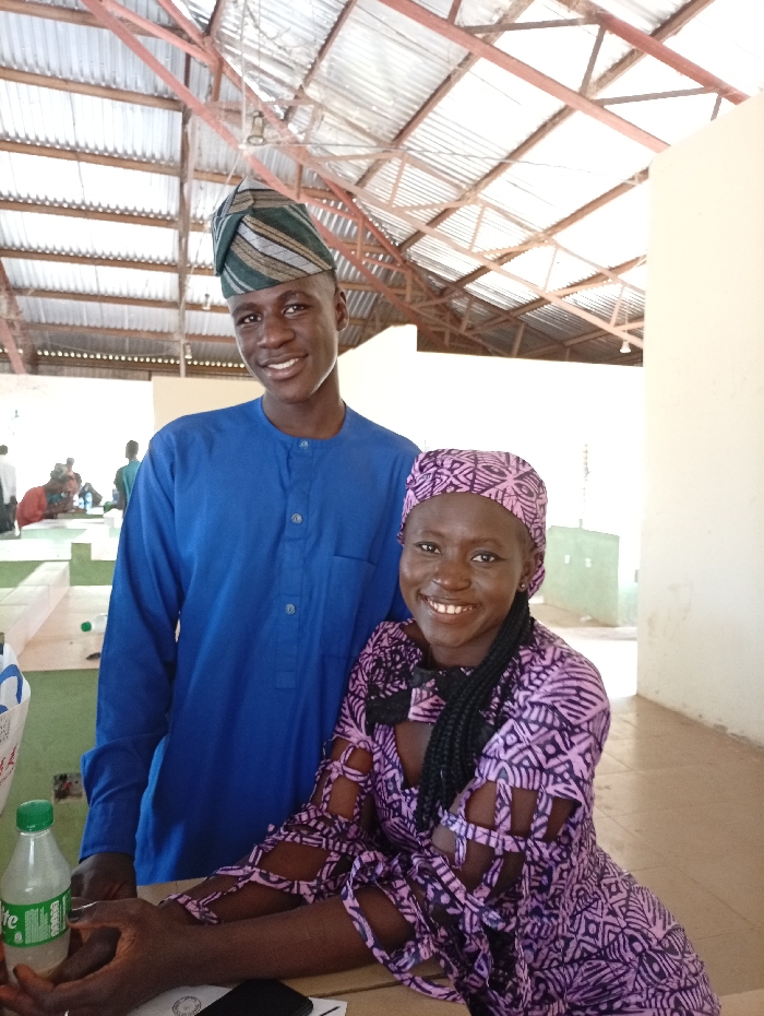 - "A young adult male and female are centrally positioned, smiling directly at the camera, in what appears to be a covered gathering space in Kaninkon, Nigeria" by FM-Q9TnR2, licensed under CC BY 4.0