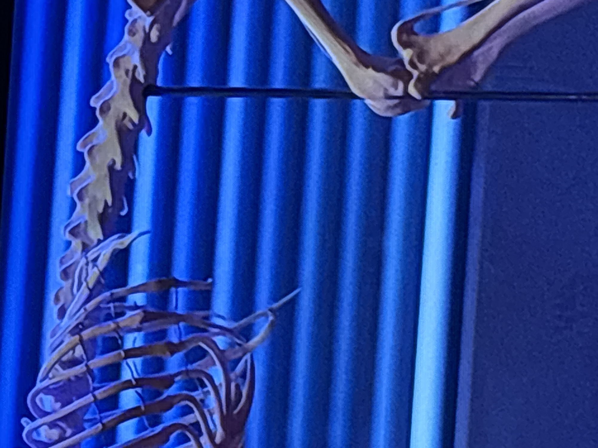 - "A close-up, brightly illuminated forensic image depicts a section of an articulated skeletal exhibit, presumably of a large animal, within an indoor environment in Voluyak, Bulgaria" by FM-JK5L72, licensed under CC BY 4.0