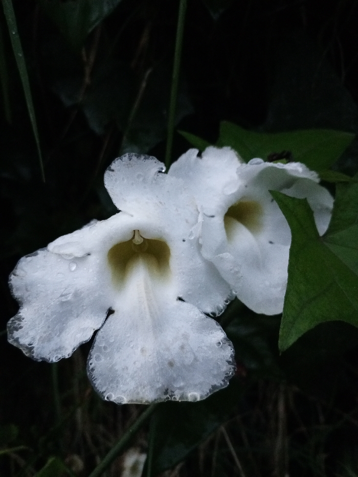 - "This image, located in Catarman, Philippines, displays two white, trumpet-shaped flowers, each covered in numerous water droplets" by FM-IQ92v2, licensed under CC BY 4.0