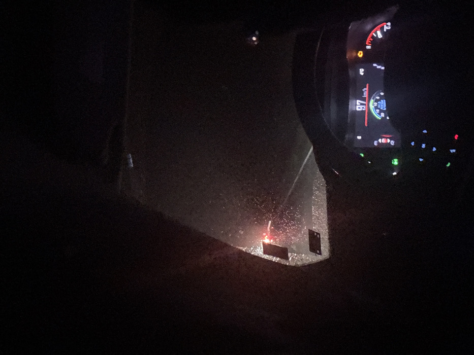 The image depicts the interior perspective from a moving vehicle at night in the city of Golets, Bulgaria