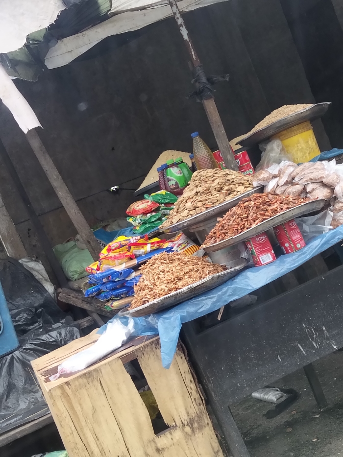 This image depicts a market stall in Port-Harcourt, Nigeria